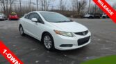 Discover the perfect blend of style, performance, and practicality in this 2012 Honda Civic EX. This one-owner gem boasts a sleek white exterior and a well-appointed interior, making it the ideal choice for the discerning driver.- One Owner- Sunroof/Moonroof- Guaranteed Financing Available- Low MileageThis Civic EX is powered by a 1.8L I4 SOHC 16V i-VTEC engine, delivering an impressive 28 city/39 highway MPG. The 5-speed automatic transmission ensures a smooth and responsive driving experience, while the front-wheel-drive system provides confident handling on the road.Beyond its impressive performance, this Civic EX is packed with a wealth of features that cater to your every need. Enjoy the convenience of keyless entry, steering wheel-mounted audio controls, and a powerful sound system with 7 speakers. Stay comfortable and connected with features like air conditioning, power windows, and a touchscreen display with radio data system.Safety is also a top priority, as evidenced by the Civic’s comprehensive suite of airbags, anti-lock brakes, and electronic stability control. The four-wheel independent suspension and speed-sensing steering ensure a smooth and responsive ride, while the rear anti-roll bar and traction control provide added confidence on the road.For the discerning driver who values style, performance, and practicality, this 2012 Honda Civic EX is the perfect choice. Experience the difference for yourself and schedule a test drive today. We’re confident you’ll be impressed by the quality, features, and value this Civic has to offer.
