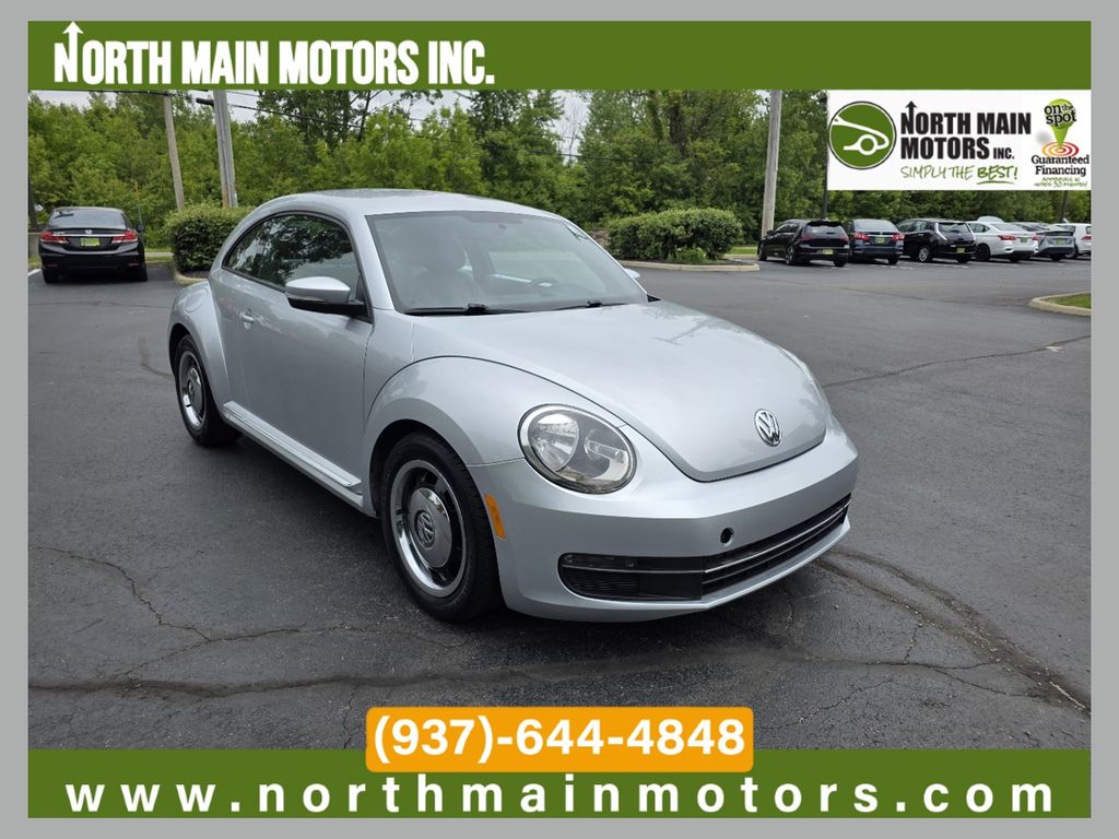 North Main Motors is pleased to offer this great-looking 2013 Volkswagen Beetle 2.5L In Silver. This vehicle is beautifully equipped with 17″ Alloy Wheels, 4-Wheel Disc Brakes, 8 Speakers, ABS brakes, Air Conditioning, Alloy wheels, AM/FM radio, Bodyside moldings, Brake assist, Bumpers: body-color, CD player, Driver door bin, Driver vanity mirror, Dual front impact airbags, Dual front side impact airbags, Electronic Stability Control, Front anti-roll bar, Front Bucket Seats, Front reading lights, Front wheel independent suspension, Heatable Front Bucket Seats, Heated door mirrors, Heated front seats, Illuminated entry, Leather steering wheel, Low tire pressure warning, Occupant sensing airbag, Outside temperature display, Overhead console, Panic alarm, Passenger door bin, Passenger vanity mirror, Power door mirrors, Power steering, Power windows, Radio data system, Radio: AM/FM Sound System w/8-Speakers, Rear anti-roll bar, Rear reading lights, Rear window defroster, Remote keyless entry, Security system, Speed control, Split folding rear seat, Tachometer, Telescoping steering wheel, Tilt steering wheel, Traction control, Trip computer, Turn signal indicator mirrors, V-Tex Leatherette Seating Surfaces, and Variably intermittent wipers! From the moment you step on our lot until the time you drive away in your next car, your buying experience with North Main Motors is our number one priority. We encourage you to use the expertise and resources of our sales staff – they are here to help you find the right car at the right price. Call us today at 937-644-4848 to schedule your test drive!