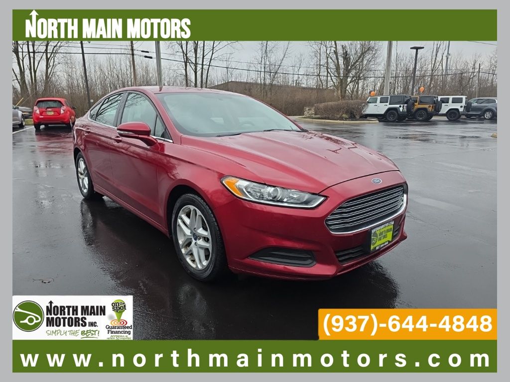 North Main Motors is pumped up to offer this handsome-looking 2014 Ford Fusion SE In Ruby Red Metallic. This vehicle is beautifully equipped with Equipment Group 200A, 17″ Aluminum Wheels, 4-Wheel Disc Brakes, 6 Speakers, ABS brakes, Air Conditioning, Alloy wheels, AM/FM radio: SiriusXM, Brake assist, Bumpers: body-color, CD player, Cloth Front Bucket Seats, Compass, Delay-off headlights, Driver door bin, Driver vanity mirror, Dual front impact airbags, Dual front side impact airbags, Electronic Stability Control, Four wheel independent suspension, Front anti-roll bar, Front Bucket Seats, Front Center Armrest, Front License Plate Bracket, Front reading lights, Fully automatic headlights, Heated door mirrors, Illuminated entry, Knee airbag, Low tire pressure warning, Occupant sensing airbag, Outside temperature display, Overhead airbag, Overhead console, Panic alarm, Passenger door bin, Passenger vanity mirror, Power door mirrors, Power driver seat, Power steering, Power windows, Radio data system, Radio: AM/FM Stereo/MP3/Single-CD, Rear anti-roll bar, Rear reading lights, Rear seat center armrest, Rear window defroster, Remote keyless entry, Security system, Speed control, Speed-sensing steering, Speed-Sensitive Wipers, Split folding rear seat, Steering wheel mounted audio controls, SYNC Communications & Entertainment System, Tachometer, Telescoping steering wheel, Tilt steering wheel, Traction control, Trip computer, Turn signal indicator mirrors, and Variably intermittent wipers! Reviews: * If you’re looking for a sporty sedan, a luxurious touring car, a fuel-efficient family car or just something to impress the neighbors, you’ll find it all in the 2014 Ford Fusion. Source: KBB.com * Fuel-efficient turbocharged engines; sharp handling; composed ride; quiet cabin; advanced technology and safety features; eye-catching style; available all-wheel drive. Source: EdmundsFrom the moment you step on our lot until the time you drive away in your next car, your buying experience with North Main Motors is our number one priority. We encourage you to use the expertise and resources of our sales staff – they are here to help you find the right car at the right price. Call us today at 937-644-4848 to schedule your test drive!