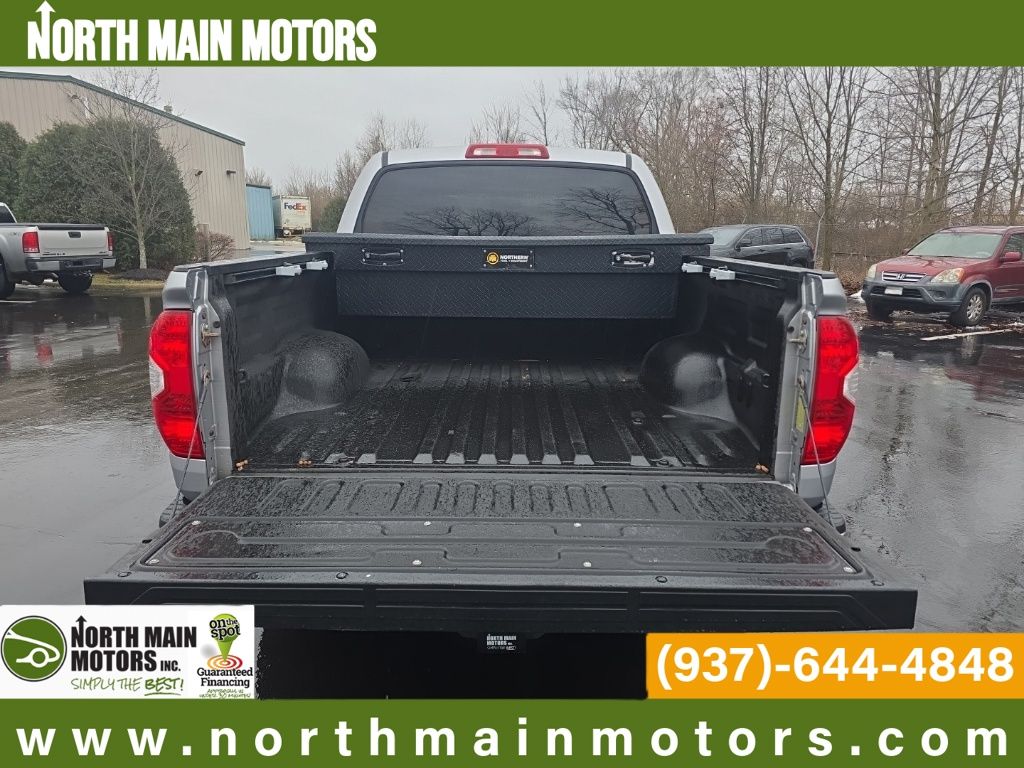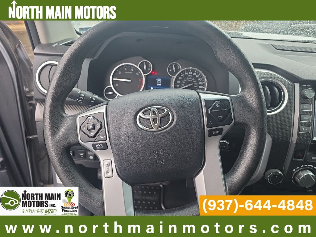 CARFAX One-Owner. North Main Motors is proud to offer this superb-looking 2015 Toyota Tundra SR5 In Silver Sky Metallic. This vehicle is beautifully equipped with 18″ x 8J Styled Steel Wheels, 3-Passenger Front Bench Seat, 4-Wheel Disc Brakes, 4.30 Axle Ratio, 6 Speakers, ABS brakes, Air Conditioning, AM/FM radio: SiriusXM, Brake assist, CD player, Driver door bin, Driver vanity mirror, Dual front impact airbags, Dual front side impact airbags, Electronic Stability Control, Exterior Parking Camera Rear, Fabric Seat Trim, Front anti-roll bar, Front Center Armrest w/Storage, Front fog lights, Front reading lights, Front wheel independent suspension, Heated door mirrors, Illuminated entry, Knee airbag, Low tire pressure warning, Occupant sensing airbag, Outside temperature display, Overhead airbag, Overhead console, Panic alarm, Passenger door bin, Passenger vanity mirror, Power door mirrors, Power steering, Power windows, Radio: Entune Audio Display AM/FM/HD w/CD Player, Rear reading lights, Rear seat center armrest, Rear step bumper, Rear window defroster, Remote keyless entry, Speed control, Speed-sensing steering, Split folding rear seat, Tachometer, Tilt steering wheel, Traction control, Variably intermittent wipers, and Voltmeter! Reviews: * Strong V8 powertrains; large double cab with traditional rear doors; colossal CrewMax cab; unique off-road-themed TRD Pro model. Source: EdmundsFrom the moment you step on our lot until the time you drive away in your next car, your buying experience with North Main Motors is our number one priority. We encourage you to use the expertise and resources of our sales staff – they are here to help you find the right car at the right price. Call us today at 937-644-4848 to schedule your test drive!