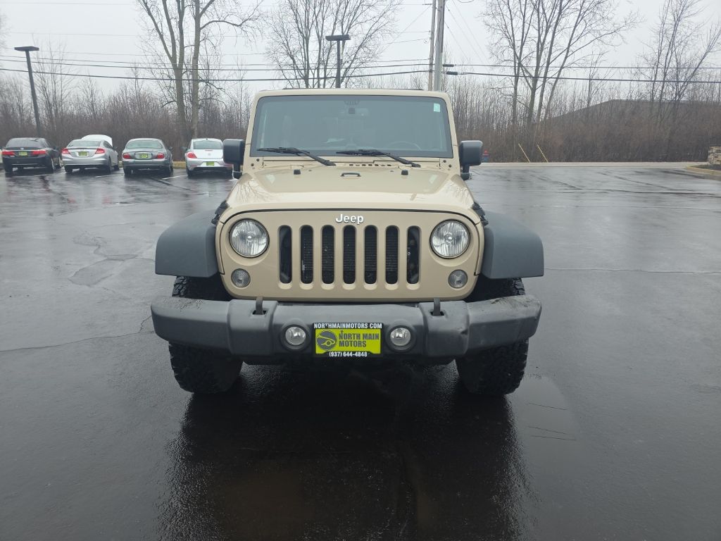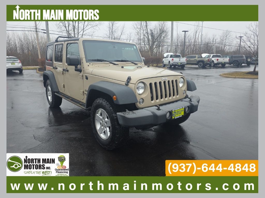 North Main Motors is delighted to offer this beautiful 2016 Jeep Wrangler Unlimited Sport In Mojave Sand Clearcoat. This vehicle is beautifully equipped with Connectivity Group (Remote USB Port, Tire Pressure Monitoring Display, Uconnect Voice Command w/Bluetooth, and Vehicle Information Center), Quick Order Package 24S (17″ x 7.5″ Aluminum Wheels, Auto-Dimming Mirror w/Reading Lamp, Chrome/Leather Wrapped Shift Knob, Deep Tint Sunscreen Windows, Front 1-Touch Down Power Windows, Leather Wrapped Steering Wheel, Power Convenience Group, Power Heated Mirrors, Power Locks, Remote Keyless Entry, and Security Alarm), 1-Yr SiriusXM Radio Service, 16″ x 7.0″ Luxury Styled Steel Wheels, 3.21 Rear Axle Ratio, 4-Wheel Disc Brakes, 8 Speakers, ABS brakes, Air Conditioning, AM/FM radio, Audio Jack Input for Mobile Devices, Black 3-Piece Hard Top, Brake assist, CD player, Cloth Seats w/Adjustable Head Restraints, Compass, Delete Sunrider Soft Top, Driver door bin, Driver vanity mirror, Dual front impact airbags, Electronic Stability Control, Freedom Panel Storage Bag, Front anti-roll bar, Front Bucket Seats, Front Center Armrest w/Storage, Front fog lights, Integrated roll-over protection, Low tire pressure warning, Normal Duty Suspension, Occupant sensing airbag, Outside temperature display, Passenger door bin, Passenger vanity mirror, Power steering, Radio: 130, Radio: 430, Rear anti-roll bar, Rear Window Defroster, Rear Window Wiper/Washer, SIRIUS Satellite Radio, Speed control, Split folding rear seat, Steering wheel mounted audio controls, Sunrider Soft Top, Supplemental Front Seat Side Airbags, Tachometer, Tilt steering wheel, Tinted Rear Quarter & Liftgate Windows, Traction control, Trip computer, and Variably intermittent wipers! From the moment you step on our lot until the time you drive away in your next car, your buying experience with North Main Motors is our number one priority. We encourage you to use the expertise and resources of our sales staff – they are here to help you find the right car at the right price. Call us today at 937-644-4848 to schedule your test drive!