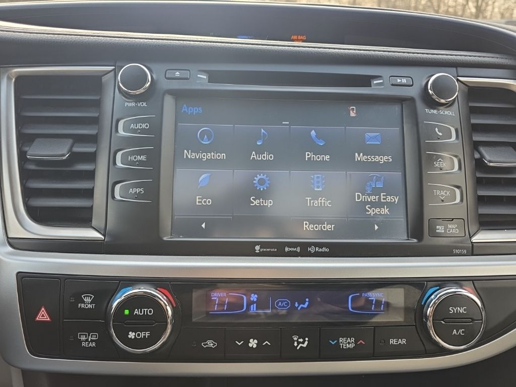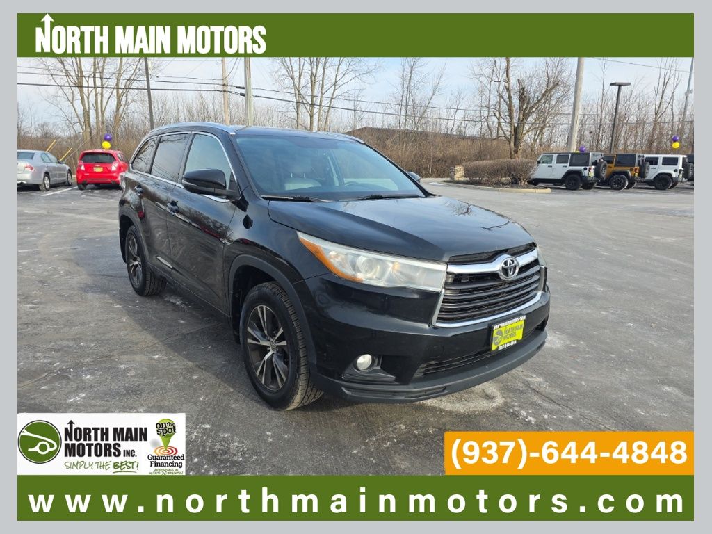 CARFAX One-Owner. North Main Motors is proud to offer this wonderful 2016 Toyota Highlander XLE V6 In Midnight Black. This vehicle is beautifully equipped with 3rd row seats: split-bench, 4-Wheel Disc Brakes, 4.154 Axle Ratio, 6 Speakers, ABS brakes, Air Conditioning, Alloy wheels, AM/FM radio: SiriusXM, Auto-dimming Rear-View mirror, Automatic temperature control, Brake assist, Bumpers: body-color, CD player, Delay-off headlights, Driver door bin, Driver vanity mirror, Dual front impact airbags, Dual front side impact airbags, Electronic Stability Control, Exterior Parking Camera Rear, Four wheel independent suspension, Front anti-roll bar, Front Bucket Seats, Front Center Armrest, Front dual zone A/C, Front fog lights, Front reading lights, Fully automatic headlights, Garage door transmitter, Heated door mirrors, Heated front seats, Illuminated entry, Knee airbag, Leather Seat Material, Leather Shift Knob, Low tire pressure warning, Navigation System, Occupant sensing airbag, Outside temperature display, Overhead airbag, Overhead console, Panic alarm, Passenger door bin, Passenger vanity mirror, Power door mirrors, Power driver seat, Power Liftgate, Power moonroof, Power steering, Power windows, Radio: Entune Premium Audio w/Nav & App Suite, Rear air conditioning, Rear anti-roll bar, Rear reading lights, Rear window defroster, Rear window wiper, Reclining 3rd row seat, Remote keyless entry, Roof rack: rails only, Security system, Speed control, Speed-sensing steering, Split folding rear seat, Spoiler, Steering wheel mounted audio controls, Tachometer, Telescoping steering wheel, Tilt steering wheel, Traction control, Trip computer, Turn signal indicator mirrors, Variably intermittent wipers, and Wheels: 18″ Split 5-Spoke Machined-Face Alloy! Reviews: * Refined interior appointments; quiet, compliant ride; smooth and strong V6 engine; seating for up to eight, functional cabin design. Source: EdmundsFrom the moment you step on our lot until the time you drive away in your next car, your buying experience with North Main Motors is our number one priority. We encourage you to use the expertise and resources of our sales staff – they are here to help you find the right car at the right price. Call us today at 937-644-4848 to schedule your test drive!