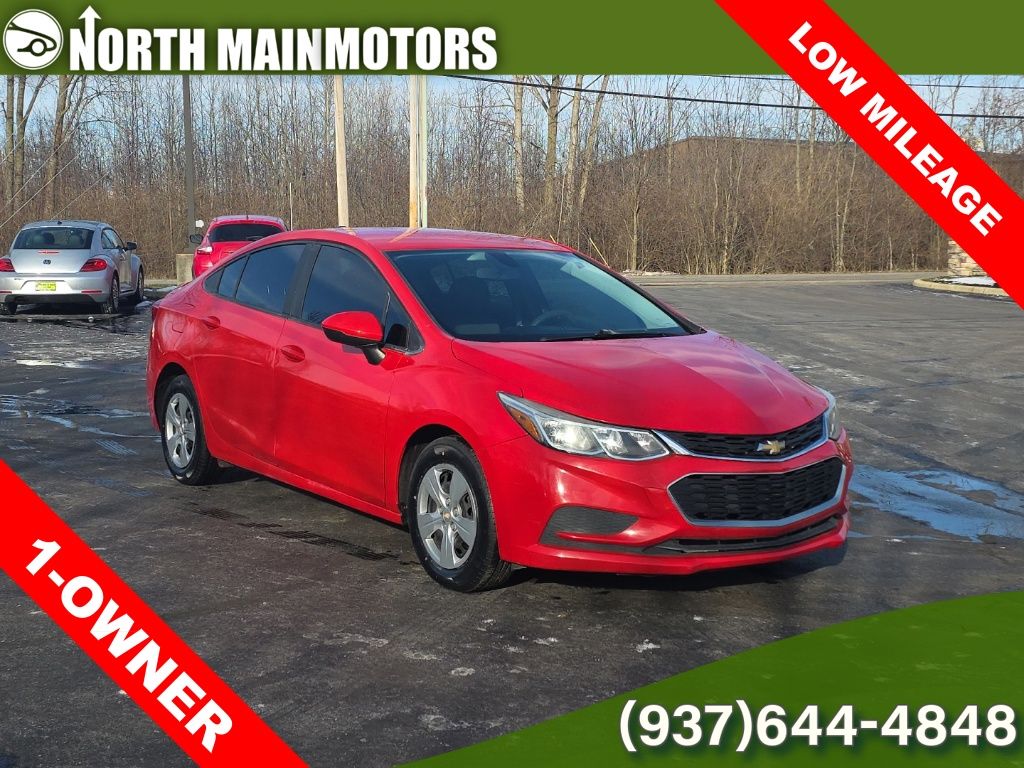 CARFAX One-Owner. North Main Motors is delighted to offer this charming 2017 Chevrolet Cruze LS In Red Hot. This vehicle is beautifully equipped with Preferred Equipment Group 1SB, 15″ Steel Wheels w/Full Bolt-On Wheel Covers, 4 Speakers, 4-Speaker Audio System Feature, 4-Wheel Disc Brakes, ABS brakes, Air Conditioning, AM/FM radio, Apple CarPlay/Android Auto, Brake assist, Bumpers: body-color, Cloth Seat Trim, Compass, Delay-off headlights, Driver 6-Way Manual Seat Adjuster, Driver door bin, Driver vanity mirror, Dual front impact airbags, Dual front side impact airbags, Electronic Stability Control, Emergency communication system: OnStar Guidance, Exterior Parking Camera Rear, Front anti-roll bar, Front Bucket Seats, Front Center Armrest, Front Passenger 2-Way Manual Seat Adjuster, Front wheel independent suspension, Fully automatic headlights, Illuminated entry, Knee airbag, Low tire pressure warning, Occupant sensing airbag, Outside temperature display, Overhead airbag, Panic alarm, Passenger door bin, Passenger vanity mirror, Power door mirrors, Power steering, Power windows, Radio data system, Radio: AM/FM Chevrolet MyLink w/7″ Touch-Screen, Rear side impact airbag, Rear window defroster, Remote keyless entry, Security system, Tachometer, Telescoping steering wheel, Tilt steering wheel, Traction control, Trip computer, Variably intermittent wipers, and Voltmeter! Reviews: * Cabin is attractive, especially with the two-tone color scheme; lots of rear-seat legroom; fuel-sipping diesel-engine upgrade available; plenty of appealing convenience and technology features are offered. Source: Edmunds * Cabin is attractive, especially with the two-tone color scheme; lots of rear seat legroom; plenty of appealing convenience and technology features are offered. Source: EdmundsFrom the moment you step on our lot until the time you drive away in your next car, your buying experience with North Main Motors is our number one priority. We encourage you to use the expertise and resources of our sales staff – they are here to help you find the right car at the right price. Call us today at 937-644-4848 to schedule your test drive!