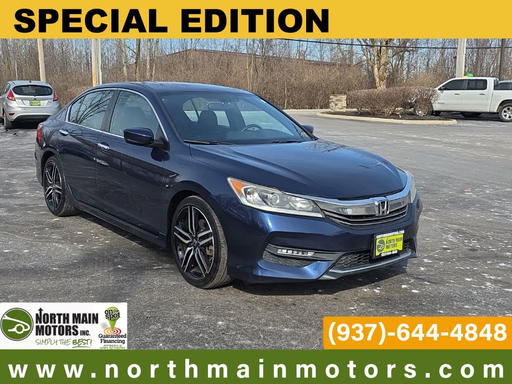 North Main Motors is pumped up to offer this attractive 2017 Honda Accord Sport Special Edition In Blue. This vehicle is beautifully equipped with 19″ Alloy Wheels, 4 Speakers, 4-Wheel Disc Brakes, ABS brakes, Air Conditioning, Alloy wheels, AM/FM radio, Automatic temperature control, Brake assist, Bumpers: body-color, CD player, Delay-off headlights, Driver door bin, Driver vanity mirror, Dual front impact airbags, Dual front side impact airbags, Electronic Stability Control, Exterior Parking Camera Rear, Four wheel independent suspension, Front anti-roll bar, Front Bucket Seats, Front Center Armrest, Front dual zone A/C, Front fog lights, Front reading lights, Fully automatic headlights, Heated Front Bucket Seats, Heated front seats, Illuminated entry, Leather Shift Knob, Leather-Trimmed Seats, Low tire pressure warning, Occupant sensing airbag, Outside temperature display, Overhead airbag, Overhead console, Panic alarm, Passenger door bin, Passenger vanity mirror, Power door mirrors, Power driver seat, Power steering, Power windows, Radio data system, Radio: 160-Watt AM/FM Audio System, Rear anti-roll bar, Rear seat center armrest, Rear window defroster, Remote keyless entry, Security system, Speed control, Speed-sensing steering, Speed-Sensitive Wipers, Split folding rear seat, Spoiler, Steering wheel mounted audio controls, Tachometer, Telescoping steering wheel, Tilt steering wheel, Traction control, Trip computer, and Variably intermittent wipers! From the moment you step on our lot until the time you drive away in your next car, your buying experience with North Main Motors is our number one priority. We encourage you to use the expertise and resources of our sales staff – they are here to help you find the right car at the right price. Call us today at 937-644-4848 to schedule your test drive!
