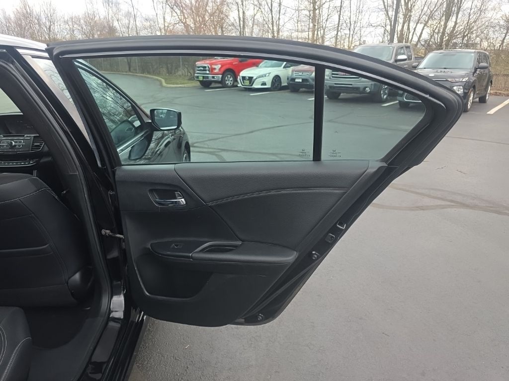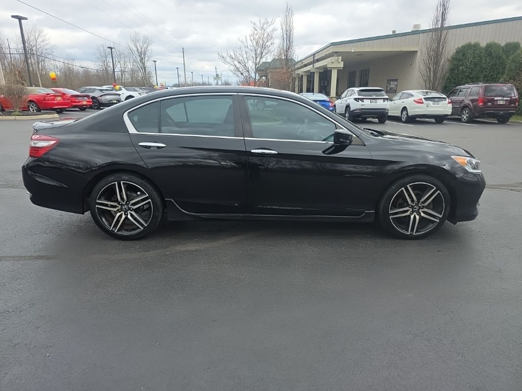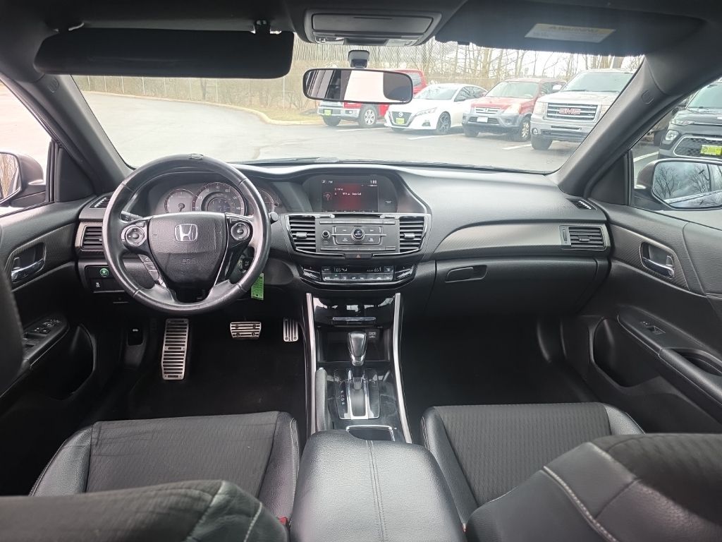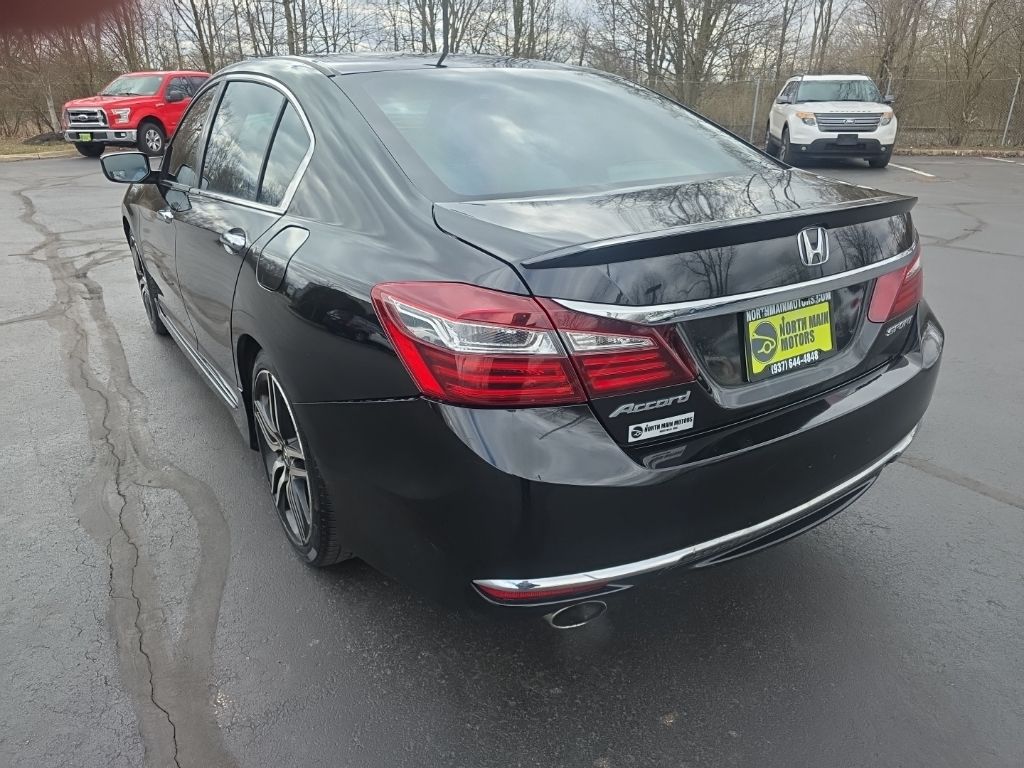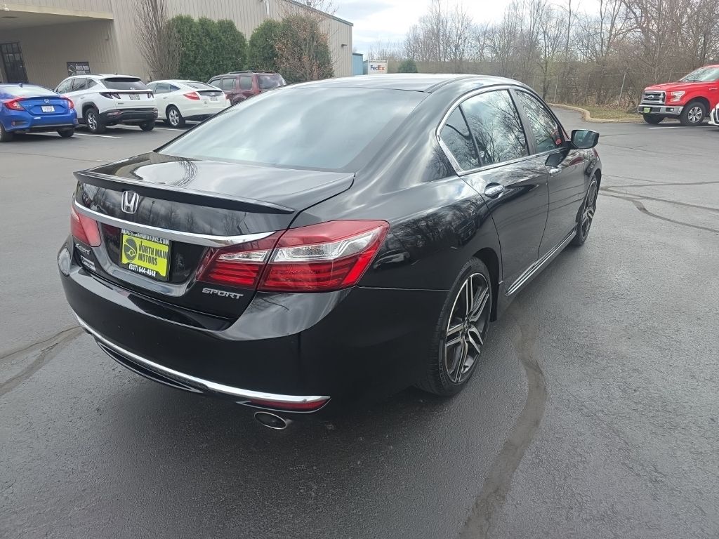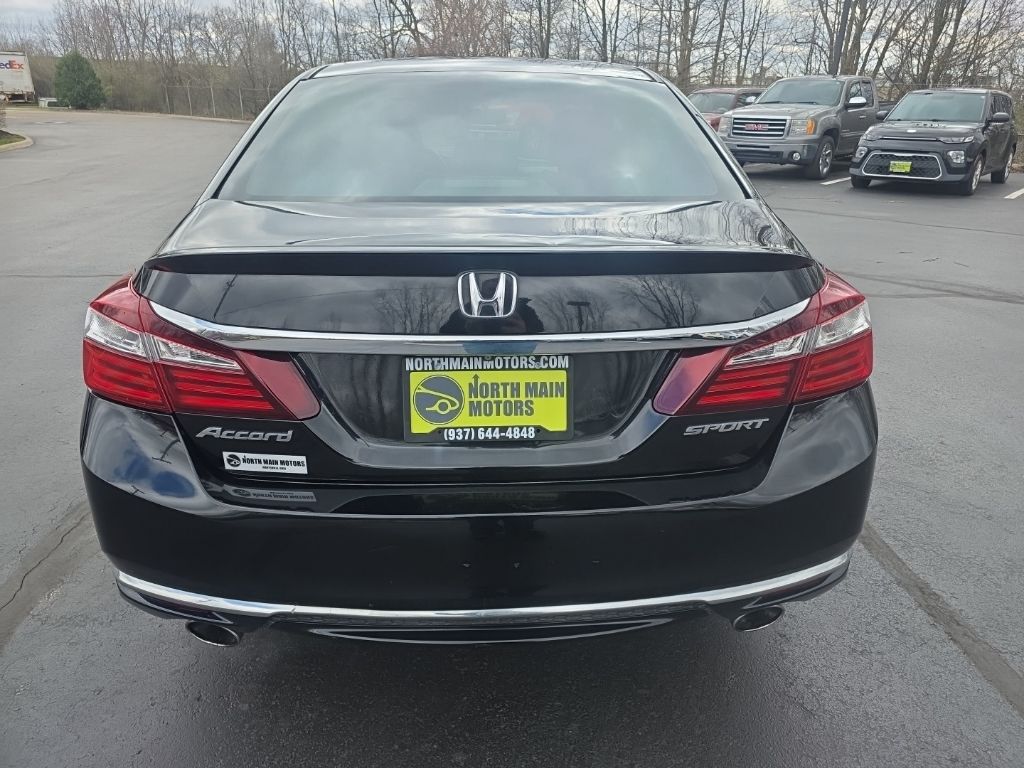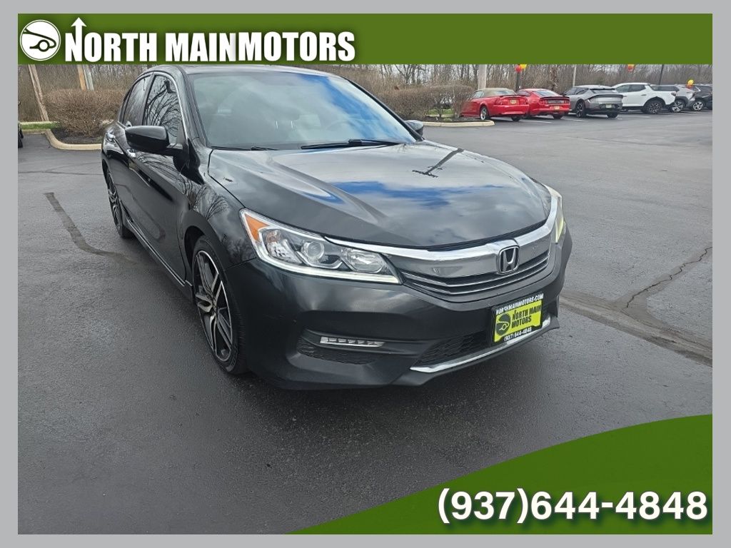 CARFAX One-Owner. North Main Motors is pleased to offer this attractive 2017 Honda Accord Sport In Crystal Black Pearl. This vehicle is beautifully equipped with 19″ Alloy Wheels, 4 Speakers, 4-Wheel Disc Brakes, ABS brakes, Air Conditioning, Alloy wheels, AM/FM radio, Automatic temperature control, Brake assist, Bumpers: body-color, CD player, Cloth Seat Trim, Delay-off headlights, Driver door bin, Driver vanity mirror, Dual front impact airbags, Dual front side impact airbags, Electronic Stability Control, Exterior Parking Camera Rear, Four wheel independent suspension, Front anti-roll bar, Front Bucket Seats, Front Center Armrest, Front dual zone A/C, Front fog lights, Front reading lights, Fully automatic headlights, Illuminated entry, Leather Shift Knob, Low tire pressure warning, Occupant sensing airbag, Outside temperature display, Overhead airbag, Overhead console, Panic alarm, Passenger door bin, Passenger vanity mirror, Power door mirrors, Power driver seat, Power steering, Power windows, Radio data system, Radio: 160-Watt AM/FM Audio System, Rear anti-roll bar, Rear seat center armrest, Rear window defroster, Remote keyless entry, Security system, Speed control, Speed-sensing steering, Speed-Sensitive Wipers, Split folding rear seat, Spoiler, Steering wheel mounted audio controls, Tachometer, Telescoping steering wheel, Tilt steering wheel, Traction control, Trip computer, and Variably intermittent wipers! From the moment you step on our lot until the time you drive away in your next car, your buying experience with North Main Motors is our number one priority. We encourage you to use the expertise and resources of our sales staff – they are here to help you find the right car at the right price. Call us today at 937-644-4848 to schedule your test drive!