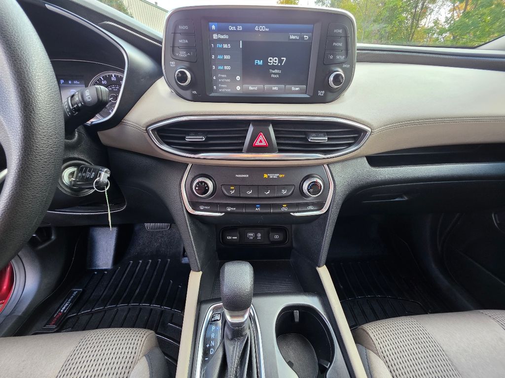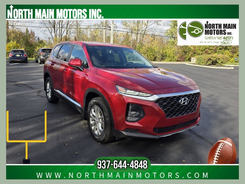 CARFAX One-Owner. North Main Motors is honored to offer this outstanding 2019 Hyundai Santa Fe SE In Scarlet Red. This vehicle is beautifully equipped with Option Group 01, 17″ x 7.0J Alloy Wheels, 4-Wheel Disc Brakes, 6 Speakers, ABS brakes, Air Conditioning, Alloy wheels, AM/FM radio, Apple CarPlay & Android Auto, Auto High-beam Headlights, Axle Ratio 3.798, Brake assist, Bumpers: body-color, Cargo Cover, Cargo Net, Cargo Tray, Carpeted Floor Mats, Delay-off headlights, Driver door bin, Driver vanity mirror, Dual front impact airbags, Dual front side impact airbags, Electronic Stability Control, Exterior Parking Camera Rear, First Aid Kit, Four wheel independent suspension, Front anti-roll bar, Front Bucket Seats, Front Center Armrest, Front reading lights, Fully automatic headlights, Illuminated entry, Low tire pressure warning, Mudguards, Occupant sensing airbag, Outside temperature display, Overhead airbag, Overhead console, Panic alarm, Passenger door bin, Passenger vanity mirror, Power door mirrors, Power steering, Power windows, Radio: AM/FM/MP3 Display Audio, Rear anti-roll bar, Rear seat center armrest, Rear window defroster, Rear window wiper, Remote keyless entry, Security system, Speed control, Speed-sensing steering, Split folding rear seat, Spoiler, Stain-Resistant Cloth Seating Surfaces, Steering wheel mounted audio controls, Tachometer, Telescoping steering wheel, Tilt steering wheel, Traction control, Trip computer, and Variably intermittent wipers! From the moment you step on our lot until the time you drive away in your next car, your buying experience with North Main Motors is our number one priority. We encourage you to use the expertise and resources of our sales staff – they are here to help you find the right car at the right price. Call us today at 937-644-4848 to schedule your test drive!