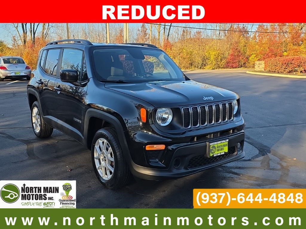 North Main Motors is excited to offer this good-looking 2019 Jeep Renegade Latitude In Black Clearcoat. This vehicle is beautifully equipped with Cold Weather Group (All-Season Floor Mats, Heated Front Seats, Heated Steering Wheel, Leather Wrapped Steering Wheel, Rain Sensitive Windshield Wipers, and Windshield Wiper De-Icer), Passive Entry Remote Start Package (Keyless Entry w/Panic Alarm), Quick Order Package 2XB, 17″ x 7.0″ Aluminum Wheels, 3.734 Final Drive Ratio, 4-Wheel Disc Brakes, 6 Speakers, ABS brakes, Air Conditioning, Alloy wheels, AM/FM radio: SiriusXM, Anti-whiplash front head restraints, Apple CarPlay/Android Auto, Automatic temperature control, Brake assist, Compass, Delay-off headlights, Driver door bin, Driver vanity mirror, Dual front impact airbags, Dual front side impact airbags, Electronic Stability Control, Four wheel independent suspension, Front anti-roll bar, Front Bucket Seats, Front Center Armrest, Front dual zone A/C, Front fog lights, Front reading lights, Fully automatic headlights, Heated door mirrors, Illuminated entry, Knee airbag, Low tire pressure warning, Manual Adjust 4-Way Front Passenger Seat, Manufacturer’s Statement of Origin, Normal Duty Suspension, Occupant sensing airbag, Outside temperature display, Overhead airbag, Panic alarm, ParkView Rear Back-Up Camera, Passenger door bin, Passenger vanity mirror, Power door mirrors, Power steering, Power windows, Premium Cloth Bucket Seats, Radio data system, Radio: Uconnect 4 w/7″ Display, Rear anti-roll bar, Rear window defroster, Rear window wiper, Remote keyless entry, Roof rack: rails only, Speed control, Split folding rear seat, Spoiler, Steering wheel mounted audio controls, Tachometer, Telescoping steering wheel, Tilt steering wheel, Traction control, Trip computer, Variably intermittent wipers, and Voltmeter! From the moment you step on our lot until the time you drive away in your next car, your buying experience with North Main Motors is our number one priority. We encourage you to use the expertise and resources of our sales staff – they are here to help you find the right car at the right price. Call us today at 937-644-4848 to schedule your test drive!