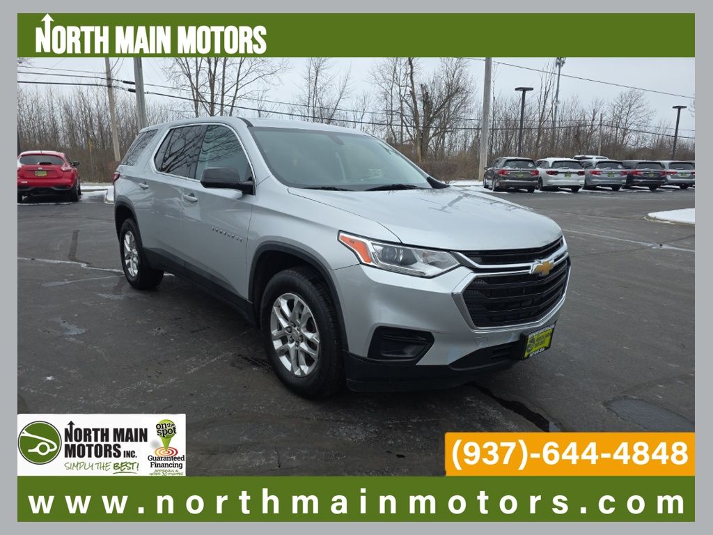 North Main Motors is pumped up to offer this fantastic-looking 2020 Chevrolet Traverse LS In Silver Ice Metallic. This vehicle is beautifully equipped with Preferred Equipment Group 1LS, 3.49 Axle Ratio, 3rd row seats: split-bench, 4-Wheel Disc Brakes, 6 Speakers, 8-Passenger Seating (2-3-3 Seating Configuration), ABS brakes, Air Conditioning, Alloy wheels, AM/FM radio, Apple CarPlay/Android Auto, Automatic temperature control, Brake assist, Bumpers: body-color, Compass, Delay-off headlights, Driver door bin, Driver vanity mirror, Dual front impact airbags, Dual front side impact airbags, Electronic Stability Control, Emergency communication system: OnStar and Chevrolet connected services capable, Four wheel independent suspension, Front anti-roll bar, Front Bucket Seats, Front Center Armrest, Front dual zone A/C, Front reading lights, Fully automatic headlights, Heated door mirrors, High-Intensity Discharge Headlights, Illuminated entry, Low tire pressure warning, Occupant sensing airbag, Outside temperature display, Overhead airbag, Overhead console, Panic alarm, Passenger door bin, Passenger vanity mirror, Power door mirrors, Power steering, Power windows, Premium Cloth Seat Trim, Radio data system, Radio: Chevrolet Infotainment System AM/FM Stereo, Rear air conditioning, Rear anti-roll bar, Rear reading lights, Rear window defroster, Rear window wiper, Remote keyless entry, Security system, Speed control, Speed-sensing steering, Split folding rear seat, Spoiler, Steering wheel mounted audio controls, Tachometer, Telescoping steering wheel, Tilt steering wheel, Traction control, Trip computer, Variably intermittent wipers, Voltmeter, and Wheels: 18″ Bright Silver Painted Aluminum! From the moment you step on our lot until the time you drive away in your next car, your buying experience with North Main Motors is our number one priority. We encourage you to use the expertise and resources of our sales staff – they are here to help you find the right car at the right price. Call us today at 937-644-4848 to schedule your test drive!
