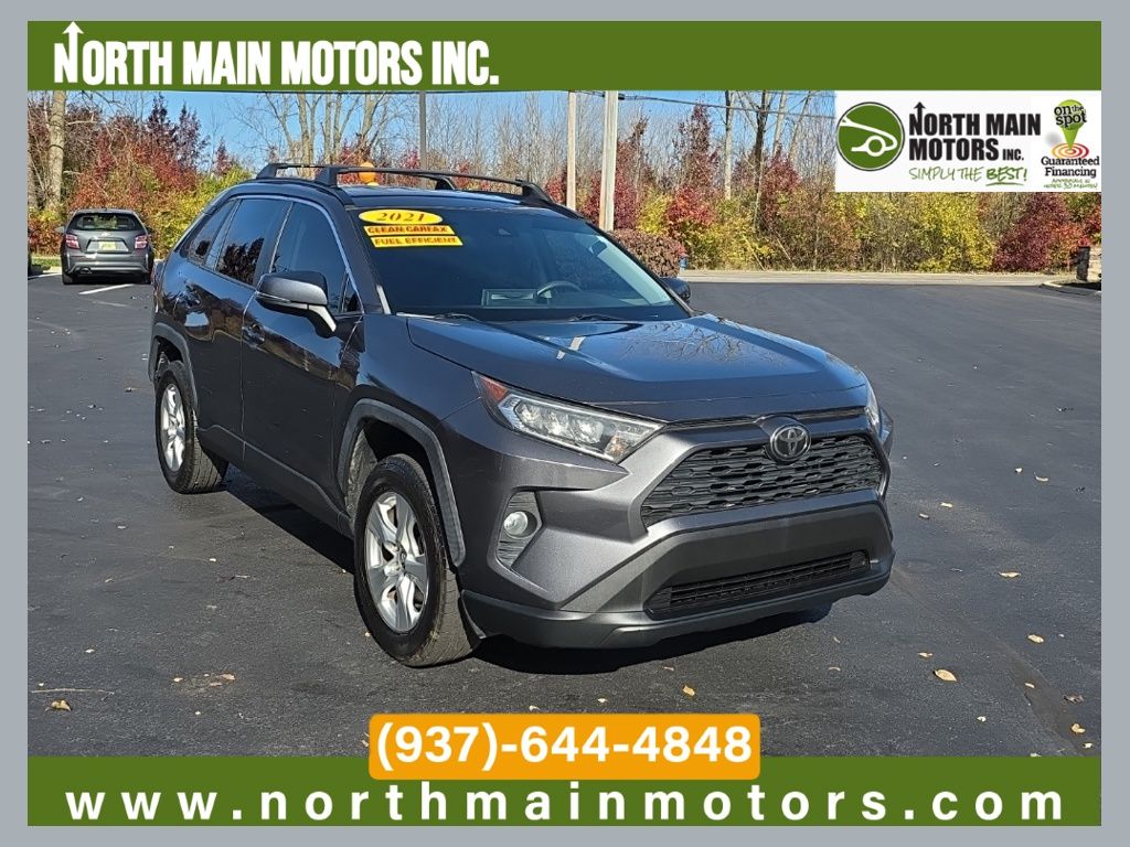 North Main Motors is pleased to offer this handsome 2021 Toyota RAV4 XLE In Magnetic Gray. This vehicle is beautifully equipped with 4-Wheel Disc Brakes, 6 Speakers, ABS brakes, Air Conditioning, Alloy wheels, AM/FM radio: SiriusXM, AM/FM Stereo, Apple CarPlay/Android Auto, Auto High-beam Headlights, Automatic temperature control, Axle Ratio: 3.177, Brake assist, Bumpers: body-color, Delay-off headlights, Driver door bin, Driver vanity mirror, Dual front impact airbags, Dual front side impact airbags, Electronic Stability Control, Emergency communication system, Exterior Parking Camera Rear, Fabric Seat Trim, Four wheel independent suspension, Front anti-roll bar, Front Bucket Seats, Front Center Armrest, Front dual zone A/C, Front fog lights, Front reading lights, Fully automatic headlights, Heated door mirrors, Illuminated entry, Knee airbag, Low tire pressure warning, Occupant sensing airbag, Outside temperature display, Overhead airbag, Overhead console, Panic alarm, Passenger door bin, Passenger vanity mirror, Power door mirrors, Power driver seat, Power steering, Power windows, Radio data system, Rear anti-roll bar, Rear seat center armrest, Rear window defroster, Rear window wiper, Remote keyless entry, Roof rack: rails only, Speed control, Speed-sensing steering, Split folding rear seat, Spoiler, Steering wheel mounted audio controls, Tachometer, Telescoping steering wheel, Tilt steering wheel, Traction control, Trip computer, Turn signal indicator mirrors, Variably intermittent wipers, and Wheels: 17″ 5-Spoke Silver Alloy! From the moment you step on our lot until the time you drive away in your next car, your buying experience with North Main Motors is our number one priority. We encourage you to use the expertise and resources of our sales staff – they are here to help you find the right car at the right price. Call us today at 937-644-4848 to schedule your test drive!