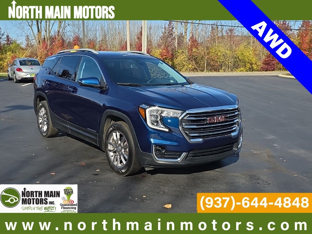 North Main Motors is proud to offer this wonderful 2022 GMC Terrain SLT In Marine Metallic. This vehicle is beautifully equipped with GMC Pro Safety Plus (Adaptive Cruise Control, Lane Change Alert w/Side Blind Zone Alert, Rear Cross-Traffic Alert, Rear Park Assist, and Safety Alert Seat), Preferred Equipment Group 4SA, 2 USB Data Ports, 2 USB Data Ports w/SD Card Reader, 3.47 Axle Ratio, 4-Wheel Disc Brakes, 6 Speakers, 6-Speaker Audio System Feature, 6-Way Power Front Passenger Seat, 8-Way Power Driver Seat Adjuster, ABS brakes, Air Conditioning, Alloy wheels, AM/FM radio: SiriusXM, Auto High-beam Headlights, Auto-dimming Rear-View mirror, Automatic temperature control, Bluetooth® For Phone, Brake assist, Bumpers: body-color, Compass, Delay-off headlights, Driver & Front Passenger Heated Seats, Driver door bin, Driver vanity mirror, Dual front impact airbags, Dual front side impact airbags, Electronic Stability Control, Emergency communication system: OnStar Guidance, Four wheel independent suspension, Front anti-roll bar, Front Bucket Seats, Front Center Armrest, Front dual zone A/C, Front fog lights, Front Passenger 2-Way Power Lumbar, Front reading lights, Fully automatic headlights, Garage door transmitter, Heated door mirrors, Heated front seats, Heated steering wheel, Illuminated entry, Lane Departure Warning System, Low tire pressure warning, Memory seat, Not Equipped w/Driver & Fr Pass Heated Seats, Occupant sensing airbag, Outside temperature display, Overhead airbag, Overhead console, Panic alarm, Passenger door bin, Passenger vanity mirror, Perforated Leather-Appointed Seat Trim, Power door mirrors, Power Driver Lumbar Control, Power driver seat, Power Liftgate, Power passenger seat, Power steering, Power windows, Radio data system, Radio: GMC Infotainment Audio System w/8″ Display, Rear anti-roll bar, Rear seat center armrest, Rear window defroster, Rear window wiper, Remote keyless entry, Roof rack: rails only, Security system, SiriusXM Radio, Speed control, Speed-sensing steering, Split folding rear seat, Spoiler, Steering wheel mounted audio controls, Tachometer, Telescoping steering wheel, Tilt steering wheel, Traction control, Trip computer, Turn signal indicator mirrors, Variably intermittent wipers, Wheels: 18″ x 7″ Silver Painted Aluminum, and Wireless Apple CarPlay/Wireless Android Auto! From the moment you step on our lot until the time you drive away in your next car, your buying experience with North Main Motors is our number one priority. We encourage you to use the expertise and resources of our sales staff – they are here to help you find the right car at the right price. Call us today at 937-644-4848 to schedule your test drive!