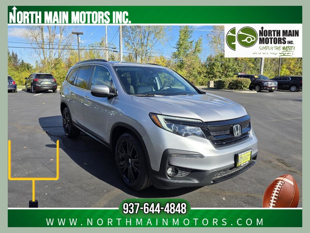 CARFAX One-Owner. North Main Motors is honored to offer this wonderful 2022 Honda Pilot Special Edition In Silver Metallic. This vehicle is beautifully equipped with 3rd row seats: split-bench, 4-Wheel Disc Brakes, 4.33 Axle Ratio, 7 Speakers, A/V remote: CabinControl, ABS brakes, Air Conditioning, Alloy wheels, AM/FM radio: SiriusXM, Apple CarPlay/Android Auto, Auto High-beam Headlights, Auto-dimming Rear-View mirror, Automatic temperature control, Blind Spot Information (BSI) System warning, Brake assist, Bumpers: body-color, Delay-off headlights, Driver door bin, Driver vanity mirror, Dual front impact airbags, Dual front side impact airbags, Electronic Stability Control, Emergency communication system: HondaLink Assist, Exterior Parking Camera Rear, Forward collision: Collision Mitigation Braking System (CMBS) + FCW mitigation, Four wheel independent suspension, Front anti-roll bar, Front Bucket Seats, Front Center Armrest, Front dual zone A/C, Front fog lights, Front reading lights, Fully automatic headlights, Garage door transmitter: HomeLink, Heated door mirrors, Heated Front Bucket Seats, Heated front seats, Illuminated entry, Lane departure: Lane Keeping Assist System (LKAS) active, Leather Seat Trim, Low tire pressure warning, Memory seat, Occupant sensing airbag, Outside temperature display, Overhead airbag, Overhead console, Panic alarm, Passenger door bin, Passenger vanity mirror, Power door mirrors, Power driver seat, Power Liftgate, Power moonroof, Power passenger seat, Power steering, Power windows, Radio data system, Radio: 215-Watt Audio System, Rear air conditioning, Rear anti-roll bar, Rear reading lights, Rear seat center armrest, Rear window defroster, Rear window wiper, Reclining 3rd row seat, Remote keyless entry, Roof rack: rails only, Security system, Speed control, Speed-sensing steering, Speed-Sensitive Wipers, Split folding rear seat, Spoiler, Steering wheel mounted audio controls, Tachometer, Telescoping steering wheel, Tilt steering wheel, Traction control, Trip computer, Turn signal indicator mirrors, Variably intermittent wipers, and Wheels: 20″ Exclusive Gloss Black Alloy! From the moment you step on our lot until the time you drive away in your next car, your buying experience with North Main Motors is our number one priority. We encourage you to use the expertise and resources of our sales staff – they are here to help you find the right car at the right price. Call us today at 937-644-4848 to schedule your test drive!