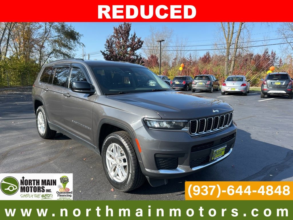 CARFAX One-Owner. North Main Motors is delighted to offer this beautiful 2022 Jeep Grand Cherokee L Laredo In Baltic Gray Metallic Clearcoat. This vehicle is beautifully equipped with Luxury Tech Group I (115V Auxiliary Power Outlet, 3rd Row Charge-Only USB Ports, Heated Front Seats, Heated Steering Wheel, Leather Wrapped Steering Wheel, Power Liftgate, Rain Sensitive Windshield Wipers, Remote Start System, Selectable Tire Fill Alert, and Wireless Charging Pad), Quick Order Package 22A, 2nd Row 60/40 Bench w/Manual Tip/Slide, 2nd Row Seat Center Armrest/Cupholders, 3 Rear Seat Head Restraints, 3.45 Rear Axle Ratio, 3rd row seats: split-bench, 4-Wheel Disc Brakes, 6 Speakers, 7-Passenger Seating, ABS brakes, Air Conditioning, Alloy wheels, AM/FM radio, Anti-whiplash front head restraints, Automatic temperature control, Brake assist, Bumpers: body-color, Center Rear 3-Point Seat Belt, Cloth Seats, Compass, Delay-off headlights, Driver door bin, Driver vanity mirror, Dual front impact airbags, Dual front side impact airbags, Electronic Stability Control, Emergency communication system, Four wheel independent suspension, Front anti-roll bar, Front Bucket Seats, Front Center Armrest w/Storage, Front dual zone A/C, Front reading lights, Fully automatic headlights, Heated door mirrors, Illuminated entry, Knee airbag, Low tire pressure warning, Manual Fold Seatbacks, Normal Duty Suspension, Occupant sensing airbag, Outside temperature display, Overhead airbag, Overhead console, Panic alarm, ParkView Rear Back-Up Camera, Passenger door bin, Passenger vanity mirror, Power door mirrors, Power driver seat, Power steering, Power windows, Radio data system, Radio: Uconnect 5 w/8.4″ Display, Rear air conditioning, Rear anti-roll bar, Rear reading lights, Rear window defroster, Rear window wiper, Reclining 3rd row seat, Remote keyless entry, Security system, Speed control, Speed-Sensitive Wipers, Split folding rear seat, Spoiler, Steering wheel mounted audio controls, Tachometer, Telescoping steering wheel, Tilt steering wheel, Traction control, Trip computer, Variably intermittent wipers, Voltmeter, and Wheels: 18″ x 8.0″ Fully Painted Aluminum! From the moment you step on our lot until the time you drive away in your next car, your buying experience with North Main Motors is our number one priority. We encourage you to use the expertise and resources of our sales staff – they are here to help you find the right car at the right price. Call us today at 937-644-4848 to schedule your test drive!