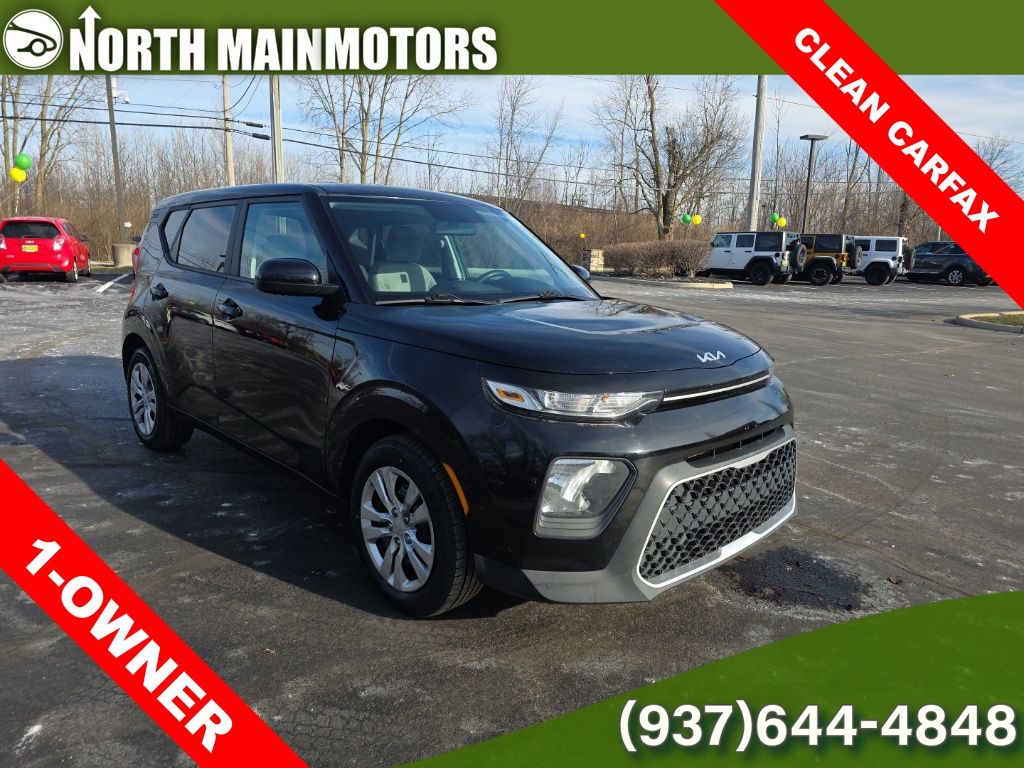 CARFAX One-Owner. North Main Motors is honored to offer this wonderful-looking 2022 Kia Soul LX In Cherry Black. This vehicle is beautifully equipped with 16″ x 6.5″ Alloy Wheels, 16″ x 6.5″ Steel Wheels, 4-Wheel Disc Brakes, 6 Speakers, ABS brakes, Air Conditioning, AM/FM radio, Apple CarPlay & Android Auto, Brake assist, Bumpers: body-color, Carpeted Floor Mats, Delay-off headlights, Driver door bin, Driver vanity mirror, Dual front impact airbags, Dual front side impact airbags, Electronic Stability Control, Exterior Parking Camera Rear, Front anti-roll bar, Front Bucket Seats, Front Center Armrest, Front reading lights, Front wheel independent suspension, Fully automatic headlights, Illuminated entry, Low tire pressure warning, Occupant sensing airbag, Outside temperature display, Overhead airbag, Overhead console, Panic alarm, Passenger door bin, Passenger vanity mirror, Power door mirrors, Power steering, Power windows, Radio: AM/FM/MP3 Audio System, Rear window defroster, Rear window wiper, Remote keyless entry, Remote Start, Speed control, Speed-sensing steering, Split folding rear seat, Steering wheel mounted audio controls, Tachometer, Telescoping steering wheel, Tilt steering wheel, Traction control, Trip computer, Variably intermittent wipers, and Woven & Tricot Cloth Seat Trim! From the moment you step on our lot until the time you drive away in your next car, your buying experience with North Main Motors is our number one priority. We encourage you to use the expertise and resources of our sales staff – they are here to help you find the right car at the right price. Call us today at 937-644-4848 to schedule your test drive!
