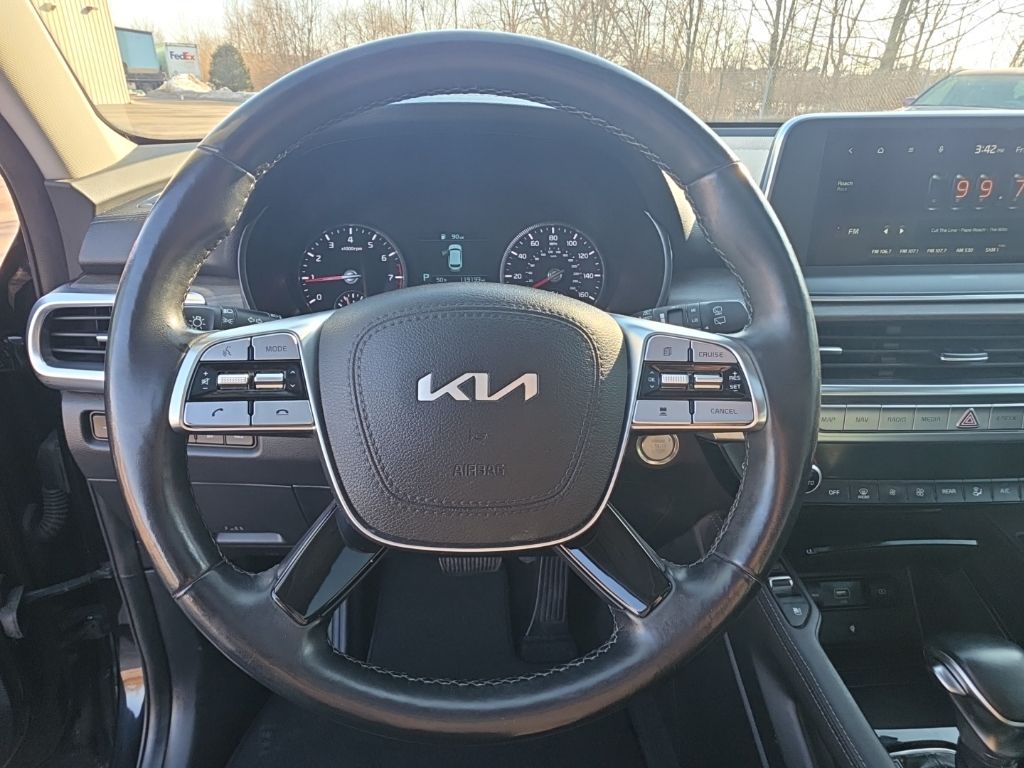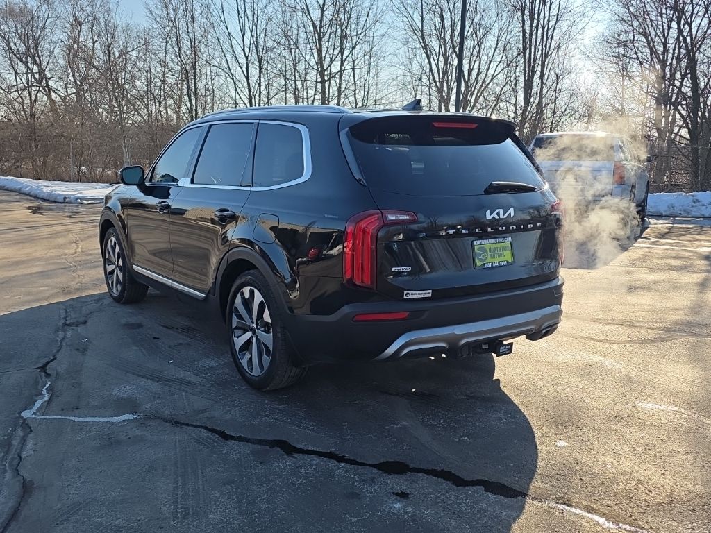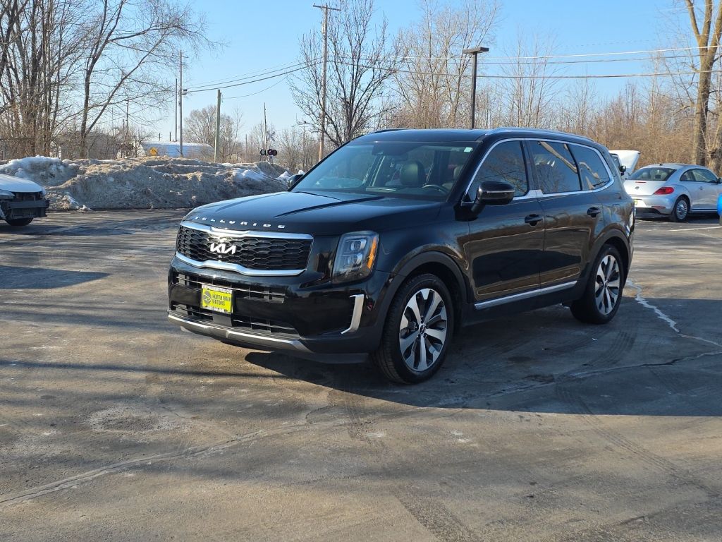 Discover the ultimate family-friendly SUV with the 2022 Kia Telluride EX. This exceptional vehicle combines exceptional capability, advanced technology, and unparalleled comfort, making it the perfect choice for your next adventure.- Rear Back Up Camera- One Owner- Navigation GPS Nav- Sunroof Moonroof- 3rd Row Seating- EX Premium Package (Satin Chrome Roof Rails, 20″ Machined Alloy Wheels, LED Headlamps, 2nd Row Captain Chairs)- Towing Package (Self Leveling Rear Suspension, Tow Hitch)Powered by a robust 3.8L V6 DOHC engine and equipped with an 8-speed automatic transmission and all-wheel drive, the Telluride EX delivers impressive performance and versatility. With a towing capacity of up to 5,000 lbs, this SUV is ready to handle all your hauling needs, whether it’s a boat, camper, or heavy cargo.Stepping inside, you’ll be greeted by a spacious and well-appointed cabin that can comfortably accommodate up to eight passengers. The EX Premium Package adds luxurious touches like satin chrome roof rails, 20-inch machined alloy wheels, and LED headlamps, elevating the Telluride’s style and presence on the road.Convenience and connectivity are at the forefront, with features like a navigation system, Apple CarPlay, and Android Auto seamlessly integrating your digital life. The power driver’s seat, heated front seats, and ventilated front seats ensure you and your passengers travel in comfort, while the power liftgate and 60/40 split-folding third-row seat provide exceptional versatility.Safety is also a top priority, with advanced driver assistance technologies like forward collision-avoidance assist, lane keeping assist, and blind-spot monitoring keeping you and your loved ones secure on the journey.With its impressive capabilities, premium amenities, and exceptional value, the 2022 Kia Telluride EX is the ultimate family SUV. Experience the difference for yourself and schedule a test drive today. We’re confident you’ll be impressed by this exceptional vehicle.