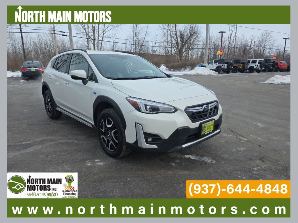CARFAX One-Owner. North Main Motors is delighted to offer this terrific-looking 2022 Subaru Crosstrek Hybrid In Crystal White Pearl. This vehicle is beautifully equipped with Standard Model, 3.70 Axle Ratio, 4-Wheel Disc Brakes, 6 Speakers, ABS brakes, Air Conditioning, Alloy wheels, AM/FM radio: SiriusXM, Anti-whiplash front head restraints, Auto High-beam Headlights, Automatic temperature control, Brake assist, Bumpers: body-color, CD player, Driver door bin, Driver vanity mirror, Dual front impact airbags, Dual front side impact airbags, Electronic Stability Control, Emergency communication system: STARLINK Safety and Security (Subscription Required), Exterior Parking Camera Rear, Four wheel independent suspension, Front anti-roll bar, Front Bucket Seats, Front Center Armrest, Front fog lights, Front reading lights, Fully automatic headlights, Heated door mirrors, Heated Front Bucket Seats, Heated front seats, Illuminated entry, Knee airbag, Leather-Trimmed Upholstery, Low tire pressure warning, Occupant sensing airbag, Outside temperature display, Overhead airbag, Overhead console, Panic alarm, Passenger door bin, Passenger vanity mirror, Power door mirrors, Power driver seat, Power steering, Power windows, Radio data system, Radio: Subaru STARLINK 8.0″ Multimedia Plus System, Rear anti-roll bar, Rear seat center armrest, Rear window defroster, Rear window wiper, Remote keyless entry, Security system, Speed control, Speed-sensing steering, Split folding rear seat, Spoiler, STARLINK/Apple CarPlay/Android Auto, Steering wheel mounted audio controls, Subaru STARLINK Smartphone Integration, Telescoping steering wheel, Tilt steering wheel, Traction control, Trip computer, Turn signal indicator mirrors, Variably intermittent wipers, and Wheels: 18″ x 7.0J Alloy Black w/Machine Finish! From the moment you step on our lot until the time you drive away in your next car, your buying experience with North Main Motors is our number one priority. We encourage you to use the expertise and resources of our sales staff – they are here to help you find the right car at the right price. Call us today at 937-644-4848 to schedule your test drive!