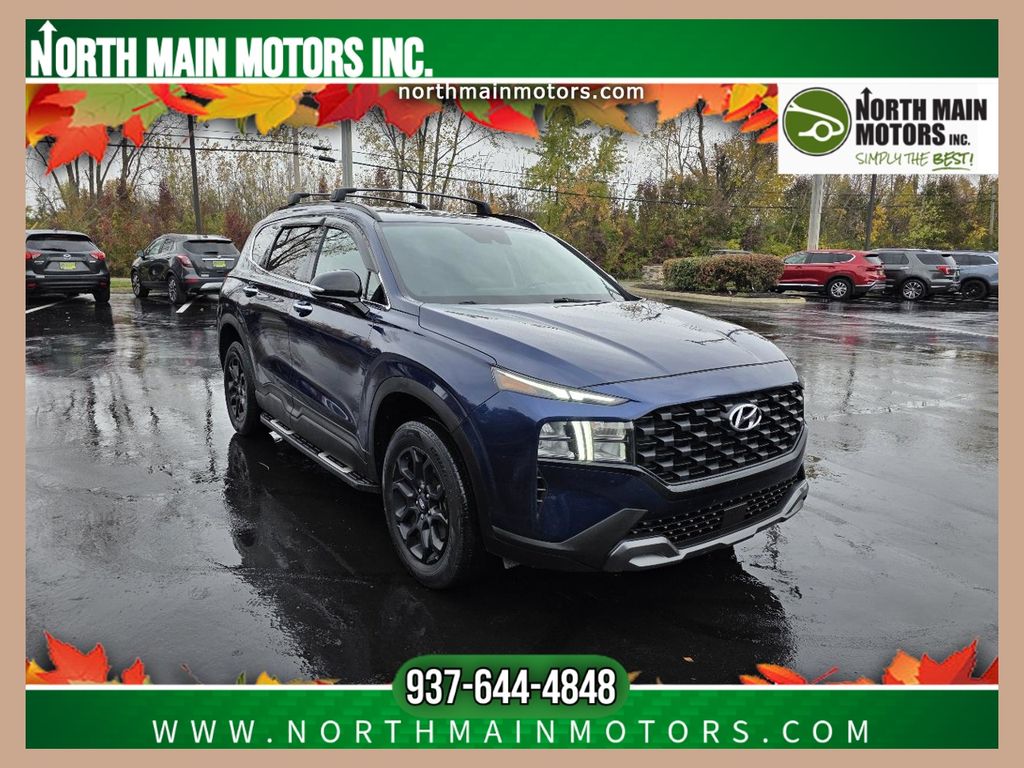 CARFAX One-Owner. North Main Motors is proud to offer this superb 2023 Hyundai Santa Fe XRT In Stormy Sea. This vehicle is beautifully equipped with Option Group 01, 4-Wheel Disc Brakes, 6 Speakers, ABS brakes, Air Conditioning, Alloy wheels, AM/FM radio: SiriusXM, Apple CarPlay & Android Auto, Auto High-beam Headlights, Automatic temperature control, Axle Ratio: 4.081, Brake assist, Bumper Applique, Bumpers: body-color, Cargo Cover/Screen, Cargo Net, Carpeted Floor Mats, Delay-off headlights, Driver door bin, Driver vanity mirror, Dual front impact airbags, Dual front side impact airbags, Electronic Stability Control, Emergency communication system, Exterior Parking Camera Rear, First Aid Kit, Four wheel independent suspension, Front anti-roll bar, Front Bucket Seats, Front Center Armrest, Front dual zone A/C, Front reading lights, Fully automatic headlights, H-Tex Leatherette Seat Trim, Heated door mirrors, Heated Front Bucket Seats, Heated front seats, Illuminated entry, Leather steering wheel, Low tire pressure warning, Navigation System, Occupant sensing airbag, Outside temperature display, Overhead airbag, Overhead console, Panic alarm, Passenger door bin, Passenger vanity mirror, Power door mirrors, Power driver seat, Power Liftgate, Power steering, Power windows, Radio: AM/FM Display Audio, Rear anti-roll bar, Rear seat center armrest, Rear window defroster, Rear window wiper, Remote keyless entry, Roof rack, Security system, Speed control, Speed-sensing steering, Split folding rear seat, Spoiler, Steering wheel mounted audio controls, Tachometer, Telescoping steering wheel, Tilt steering wheel, Traction control, Trip computer, Turn signal indicator mirrors, Variably intermittent wipers, Wheel Locks, and Wheels: 18″ x 7.5J Two-Tone Dark Alloy! From the moment you step on our lot until the time you drive away in your next car, your buying experience with North Main Motors is our number one priority. We encourage you to use the expertise and resources of our sales staff – they are here to help you find the right car at the right price. Call us today at 937-644-4848 to schedule your test drive!