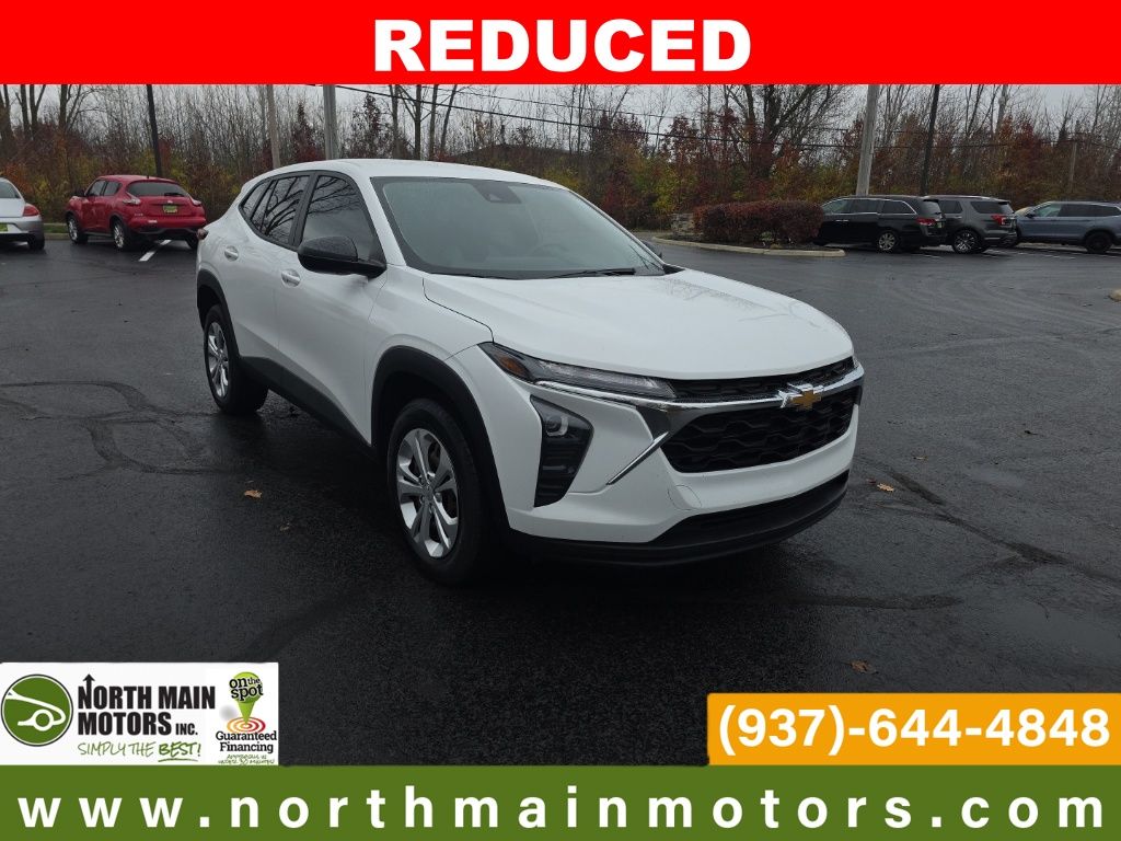 CARFAX One-Owner. North Main Motors is pumped up to offer this stunning 2024 Chevrolet Trax LS In Summit White. This vehicle is beautifully equipped with License Plate Front Mounting Package, Preferred Equipment Group 1LS, 17″ Steel Wheels w/Wheel Covers, 2-Way Adjustable Front Head Restraints, 3.50 Final Drive Axle Ratio, 4 Speakers, 4-Speaker Audio System Feature, 4-Way Manual Front Passenger Seat Adjuster, 4-Wheel Disc Brakes, 6-Way Manual Driver Seat Adjuster, ABS brakes, Air Conditioning, AM/FM radio: SiriusXM, Auto High-beam Headlights, Brake assist, Bumpers: body-color, Carpeted Rear Floor Mats, Cloth Seat Trim, Compass, Delay-off headlights, Driver door bin, Driver vanity mirror, Dual front impact airbags, Dual front side impact airbags, Electronic Stability Control, Emergency communication system: OnStar and Chevrolet connected services capable, Exterior Parking Camera Rear, Front anti-roll bar, Front Bucket Seats, Front Center Armrest, Front reading lights, Front wheel independent suspension, Fully automatic headlights, Illuminated entry, Low tire pressure warning, Occupant sensing airbag, Outside temperature display, Overhead airbag, Overhead console, Panic alarm, Passenger door bin, Passenger vanity mirror, Power door mirrors, Power steering, Power windows, Premium audio system: Chevrolet Infotainment 3, Radio data system, Radio: Chevrolet Infotainment 3 System w/AM/FM, Rear window defroster, Rear window wiper, Remote keyless entry, Security system, SiriusXM, Speed control, Split folding rear seat, Spoiler, Steering wheel mounted audio controls, Tachometer, Telescoping steering wheel, Tilt steering wheel, Traction control, Trip computer, and Variably intermittent wipers! From the moment you step on our lot until the time you drive away in your next car, your buying experience with North Main Motors is our number one priority. We encourage you to use the expertise and resources of our sales staff – they are here to help you find the right car at the right price. Call us today at 937-644-4848 to schedule your test drive!