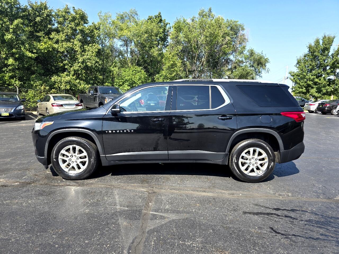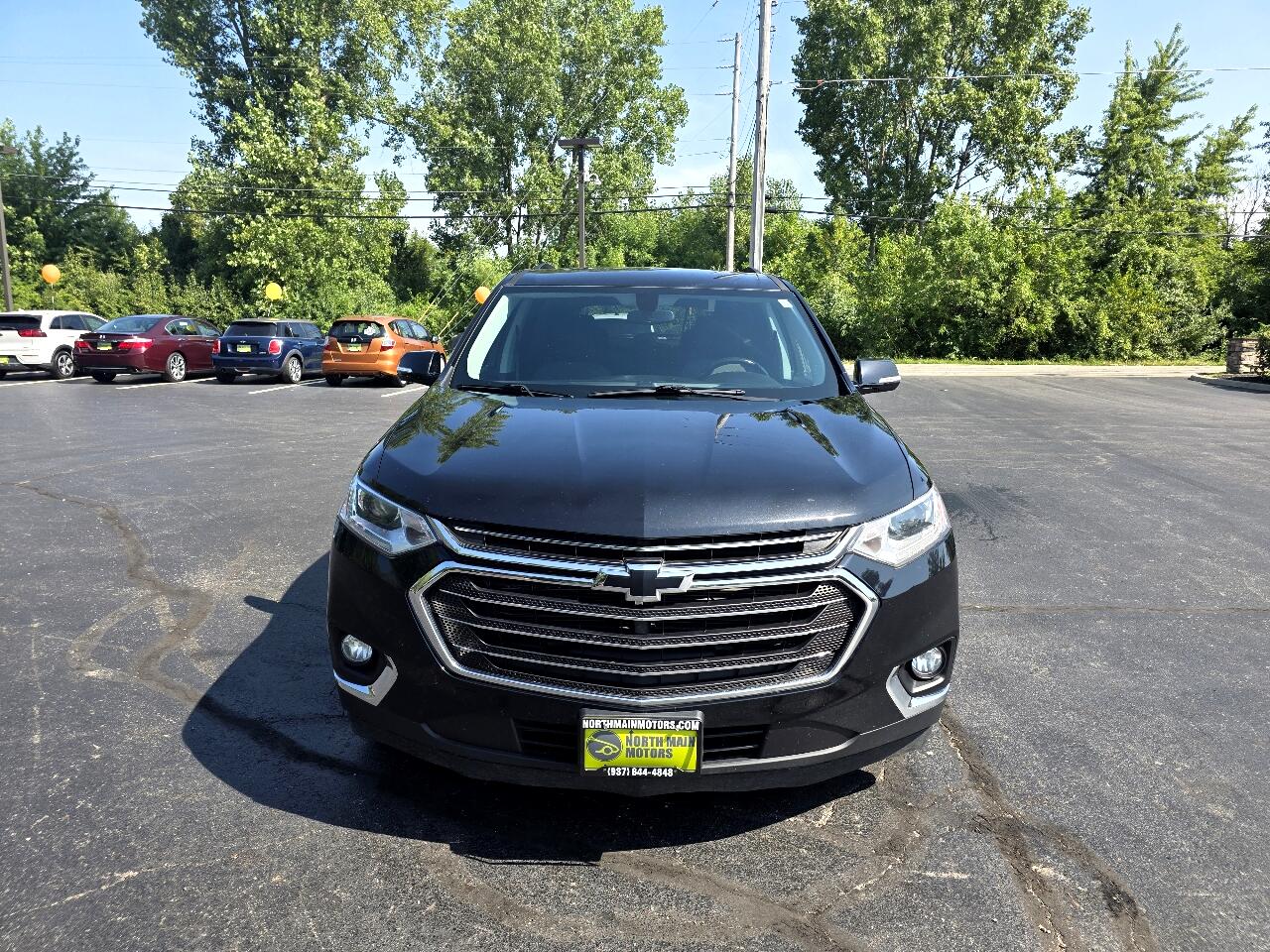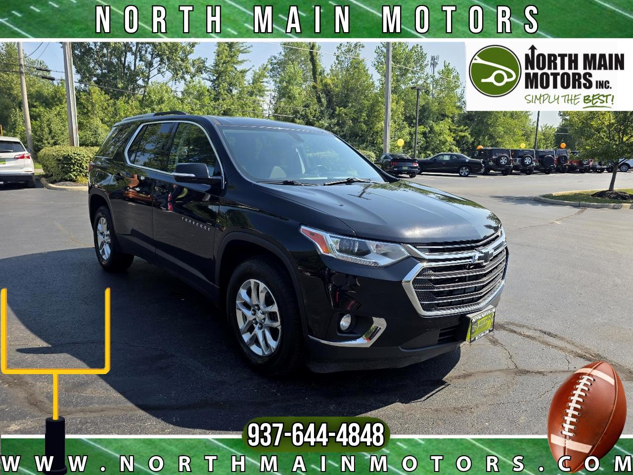 North Main Motors is delighted to offer this good-looking 2018 Chevrolet Traverse LT In Mosaic Black Metallic. This vehicle is beautifully equipped with Front License Plate Bracket Mounting Package, Interior Protection Package (LPO) (1st & 2nd Row All-Weather Floor Mats, 3rd Row All-Weather Floor Mats, and All-Weather Cargo Mat (LPO)), Preferred Equipment Group 1LT, Trailering Equipment (Heavy-Duty Cooling System), 3.49 Axle Ratio, 3rd row seats: split-bench, 4-Wheel Disc Brakes, 6 Speakers, 7-Passenger Seating (2-2-3 Seating Configuration), ABS brakes, Air Conditioning, Alloy wheels, AM/FM radio: SiriusXM, Apple CarPlay/Android Auto, Automatic temperature control, Brake assist, Bumpers: body-color, Compass, Delay-off headlights, Driver door bin, Driver vanity mirror, Dual front impact airbags, Dual front side impact airbags, Electronic Stability Control, Emergency communication system: OnStar Guidance, Exterior Parking Camera Rear, Four wheel independent suspension, Front & Rear Black Bowtie Emblems (LPO), Front anti-roll bar, Front Bucket Seats, Front Center Armrest, Front dual zone A/C, Front fog lights, Front reading lights, Fully automatic headlights, Garage door transmitter, Heated door mirrors, Heated front seats, High-Intensity Discharge Headlights, Illuminated entry, Low tire pressure warning, Occupant sensing airbag, Outside temperature display, Overhead airbag, Overhead console, Panic alarm, Passenger door bin, Passenger vanity mirror, Power door mirrors, Power driver seat, Power Liftgate, Power steering, Power windows, Premium Cloth Seat Trim, Radio data system, Radio: Chevrolet MyLink AM/FM Stereo w/8" Screen, Rear air conditioning, Rear anti-roll bar, Rear reading lights, Rear window defroster, Rear window wiper, Remote keyless entry, Roof rack: rails only, Security system, SiriusXM Satellite Radio, Speed control, Speed-sensing steering, Spoiler, Steering wheel mounted audio controls, Tachometer, Telescoping steering wheel, Tilt steering wheel, Traction control, Trip computer, Turn signal indicator mirrors, Variably intermittent wipers, Voltmeter, and Wheels: 18" Bright Silver Machined Painted Alum! From the moment you step on our lot until the time you drive away in your next car, your buying experience with North Main Motors is our number one priority. We encourage you to use the expertise and resources of our sales staff - they are here to help you find the right car at the right price. Call us today at 937-644-4848 to schedule your test drive!