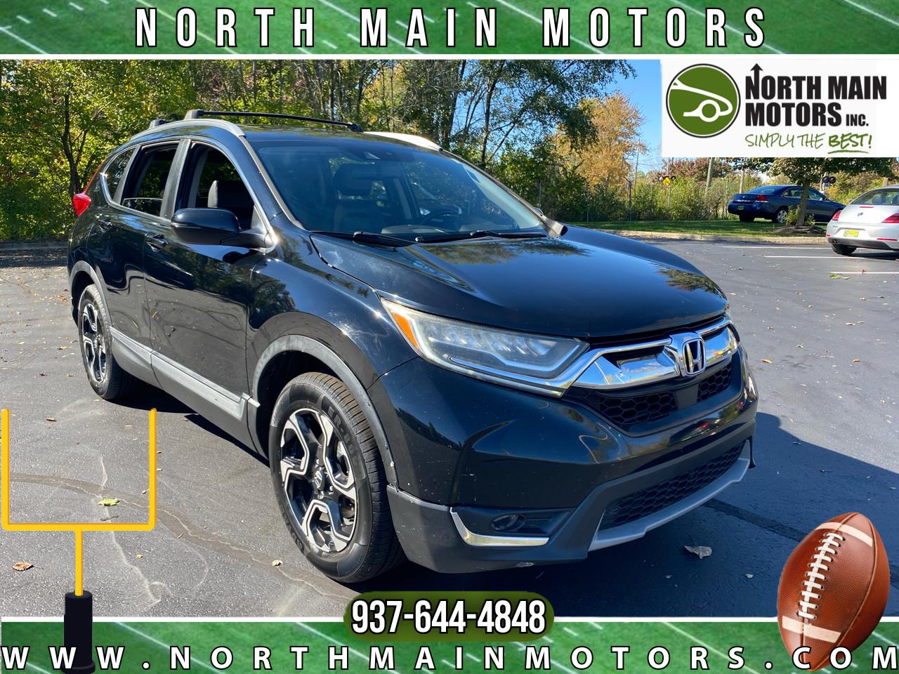 North Main Motors is pumped up to offer this great-looking 2017 Honda CR-V Touring In Crystal Black Pearl. This vehicle is beautifully equipped with 18" Alloy Wheels, 4-Wheel Disc Brakes, 5.64 Axle Ratio, 9 Speakers, ABS brakes, Air Conditioning, Alloy wheels, AM/FM radio: SiriusXM, Apple CarPlay/Android Auto, Auto High-beam Headlights, Auto-dimming Rear-View mirror, Automatic temperature control, Blind Spot Information (BSI) System warning, Brake assist, Bumpers: body-color, Compass, Delay-off headlights, Driver door bin, Driver vanity mirror, Dual front impact airbags, Dual front side impact airbags, Electronic Stability Control, Exterior Parking Camera Rear, Four wheel independent suspension, Front anti-roll bar, Front Bucket Seats, Front Center Armrest, Front dual zone A/C, Front fog lights, Front reading lights, Fully automatic headlights, Garage door transmitter: HomeLink, Heated door mirrors, Heated Front Bucket Seats, Heated front seats, Illuminated entry, Leather Seat Trim, Leather Shift Knob, Low tire pressure warning, Memory seat, Navigation System, Occupant sensing airbag, Outside temperature display, Overhead airbag, Overhead console, Panic alarm, Passenger door bin, Passenger vanity mirror, Power door mirrors, Power driver seat, Power Liftgate, Power moonroof, Power passenger seat, Power steering, Power windows, Radio data system, Radio: AM/FM/HD/SiriusXM Audio System, Rain sensing wipers, Rear anti-roll bar, Rear seat center armrest, Rear window defroster, Rear window wiper, Remote keyless entry, Roof rack: rails only, Security system, Speed control, Speed-sensing steering, Speed-Sensitive Wipers, Split folding rear seat, Spoiler, Steering wheel mounted audio controls, Tachometer, Telescoping steering wheel, Tilt steering wheel, Traction control, Trip computer, Turn signal indicator mirrors, and Variably intermittent wipers! Reviews: * Plenty of adult-sized room in both seating rows; more cargo capacity than most rivals; rear seatbacks fold flat at the tug of a lever; appealing roster of tech and safety features. Source: Edmunds From the moment you step on our lot until the time you drive away in your next car, your buying experience with North Main Motors is our number one priority. We encourage you to use the expertise and resources of our sales staff - they are here to help you find the right car at the right price. Call us today at 937-644-4848 to schedule your test drive!