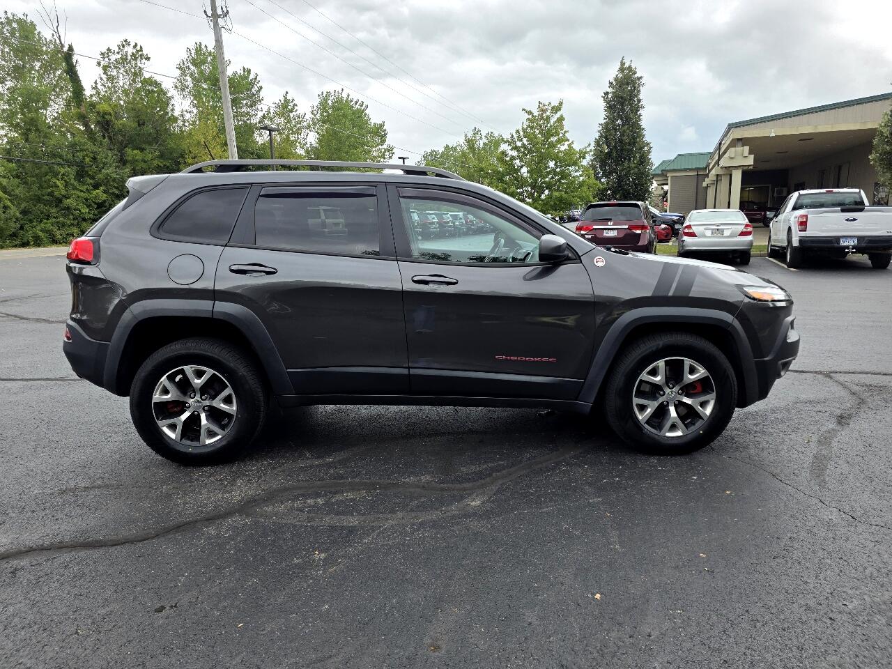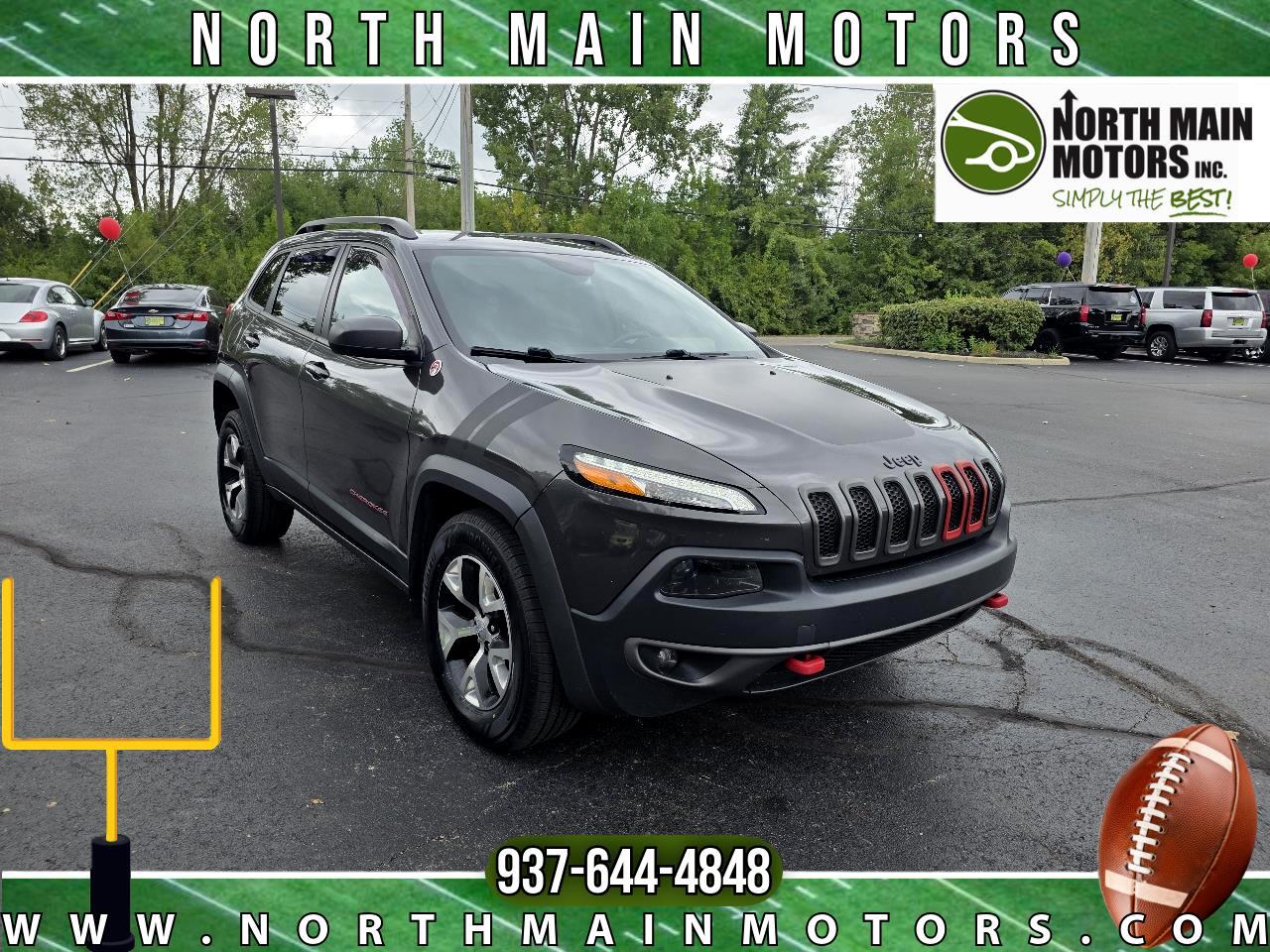 North Main Motors is very proud to offer this charming-looking 2017 Jeep Cherokee Trailhawk In Granite Crystal Metallic Clearcoat. This vehicle is beautifully equipped with Cold Weather Group (DISC) (Engine Block Heater, Exterior Mirrors w/Heating Element, Heated Front Seats, Heated Steering Wheel, Jeep Rack Off Road Accessory Kit, Power Heated Mirrors, Remote Start System, and Windshield Wiper De-Icer), Quick Order Package 27E (DISC), 17" x 7.5" Aluminum Wheels, 4-Wheel Disc Brakes, 4.08 Axle Ratio, 6 Speakers, 600 Amp Maintenance Free Battery, 8.4" Touchscreen Display, ABS brakes, Air Conditioning, Alloy wheels, AM/FM radio: SiriusXM, Anti-whiplash front head restraints, Auxiliary Transmission Oil Cooler, Bi-Xenon HID Headlamps (DISC), Brake assist, Compass, Delay-off headlights, Driver door bin, Driver vanity mirror, Dual front impact airbags, Dual front side impact airbags, Electronic Stability Control, Emergency communication system: Uconnect Access, Engine Oil Cooler, Four wheel independent suspension, Front anti-roll bar, Front Bucket Seats, Front Center Armrest, Front fog lights, Front reading lights, Fully automatic headlights, High intensity discharge headlights: Bi-Xenon, Illuminated entry, Integrated Voice Command w/Bluetooth, Knee airbag, Leather Shift Knob, Low tire pressure warning, Manufacturer's Statement of Origin, Occupant sensing airbag, Off Road Suspension, Outside temperature display, Overhead airbag, Overhead console, Panic alarm, ParkView Rear Back-Up Camera, Passenger door bin, Passenger vanity mirror, Power door mirrors, Power steering, Power windows, Premium Leather Trimmed Bucket Seats, Radio data system, Radio: Uconnect 3C w/8.4" Display, Rear anti-roll bar, Rear reading lights, Rear seat center armrest, Rear side impact airbag, Rear window defroster, Rear window wiper, Remote keyless entry, Roof rack: rails only, Speed control, Speed-sensing steering, Split folding rear seat, Spoiler, Steering wheel mounted audio controls, Tachometer, Telescoping steering wheel, Tilt steering wheel, Traction control, Trip computer, Uconnect Access, Variably intermittent wipers, and Voltmeter! From the moment you step on our lot until the time you drive away in your next car, your buying experience with North Main Motors is our number one priority. We encourage you to use the expertise and resources of our sales staff - they are here to help you find the right car at the right price. Call us today at 937-644-4848 to schedule your test drive!